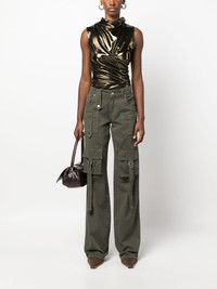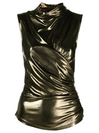 metallic-finish gathering-detail blouse Highlights - Gold-tone - Metallic finish - Mock neck - Gathered detailing - Sleeveless - Straight hem Made in Italy Composition Viscose 100% SIZE & FIT Model measurements Height 5 ft 10 in(1.77 m) Bust/Chest 29.92 in(76 cm) Hips 34.25 in(87 cm) Waist 23.62 in(60 cm) FittingInformation Designed for a slim fit that sits just away from the body offering a close yet comfortable fit Made from a midweight non-stretch fabric, this piece offers minimal elasticity when worn This piece fits true to size – take your usual size Washing instructions Dry Clean Only