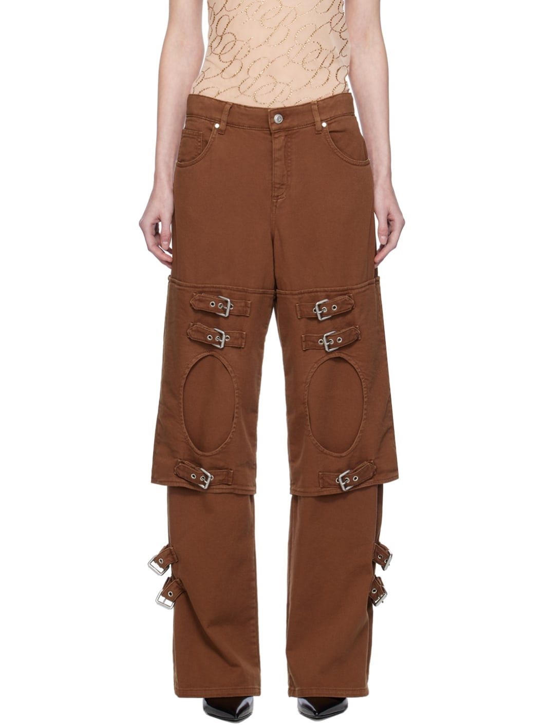 Stretch denim jeans. · Layered construction · Belt loops · Five-pocket styling · Zip-fly · Pin-buckle straps at legs and outseams · Cutout at front legs · Logo embroidered at back waistband and pockets · Logo-engraved silver-tone hardware Supplier color: Camoscio