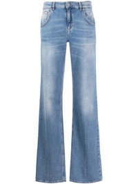 mid-rise flared jeans Highlights - Blue - Stretch-cotton - Washed denim - Whiskering effect - Embroidered logo - Belt loops - Concealed fly and button fastening - Mid-rise - Flared - Classic five pockets Imported Composition Trims: Polyester 65%, Elastane 35% Body: Cotton 99%, Elastane 1% SIZE & FIT Model measurements Height 5 ft 10 in(1.77 m) Bust/Chest 31.49 in(80 cm) Hips 35.43 in(90 cm) Waist 25.19 in(64 cm) FittingInformation Designed for a straight-leg fit, these jeans allow for a close fit at the waist and an unrestricted and comfortable fit over the leg Constructed from stretch denim, this piece offers a stretch fit with durability This piece fits small – take one size up Washing instructions Machine Wash