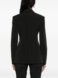 Monopetto single-breasted blazer Highlights - Black - High-shine finish - Dart detailing - Wide peak lapels - Front tie fastening - Shoulder pads - Long sleeves - Two front jetted faux-pockets - Straight hem - Satin lining Made in Italy Composition Lining: Viscose 57%, Polyester 43% Outer: Polyester 95%, Elastane 5% SIZE & FIT Model measurements Height 5 ft 11 in(1.8 m) Bust/Chest 32.67 in(83 cm) Hips 35.82 in(91 cm) Waist 24.8 in(63 cm) FittingInformation Designed for a slim fit that sits just away from the body offering a close yet comfortable fit The internal shoulder pads offer a structured shape Made from a midweight stretch fabric, this piece offers elasticity and flexibility when worn Washing instructions Dry Clean Only
