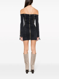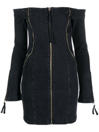 off-shoulder zip-up denim dress Blumarine takes inspiration from naughties silhouettes to create this denim minidress. The off-shoulder design is boldly adorned with silver-toned zips that contour the figure. Highlights - Black - Stretch-cotton - Denim - Front zip fastening - Decorative zip detailing - Off-shoulder - Long sleeves - Thigh-length - Straight hem Imported Composition Cotton 98%, Elastane 2% SIZE & FIT Model measurements Height 5 ft 11 in(1.8 m) Bust/Chest 31.49 in(80 cm) Hips 36.22 in(92 cm) Waist 25.59 in(65 cm) FittingInformation Designed for a close fit throughout Constructed from stretch denim, this piece offers a stretch fit with durability This piece fits true to size – take your usual size Washing instructions Machine Wash