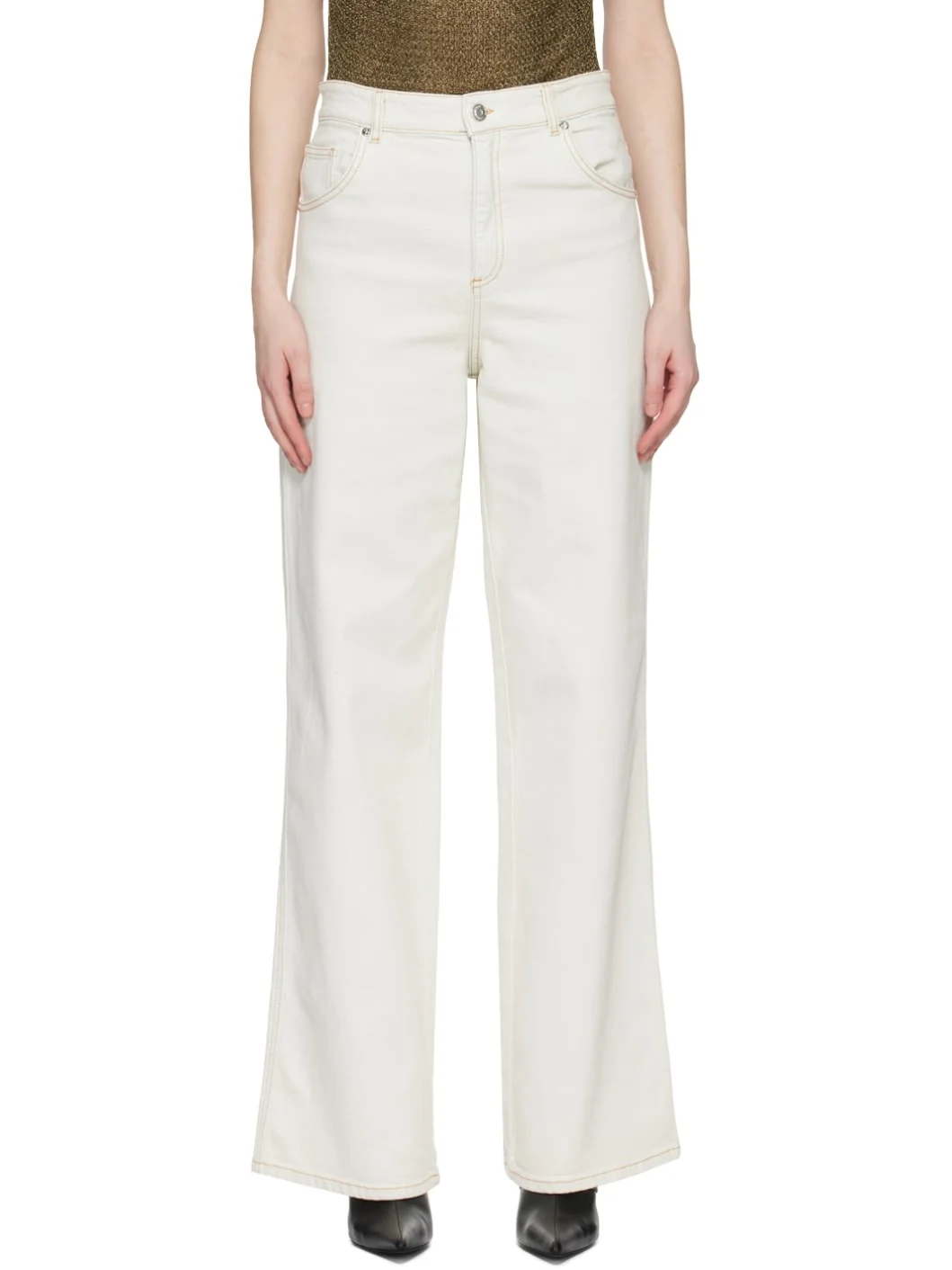 Wide-leg stretch denim jeans. Fading throughout. · Belt loops · Five-pocket styling · Zip-fly · Logo patch at back waistband · Logo-engraved silver-tone hardware Supplier color: Ghiaccio