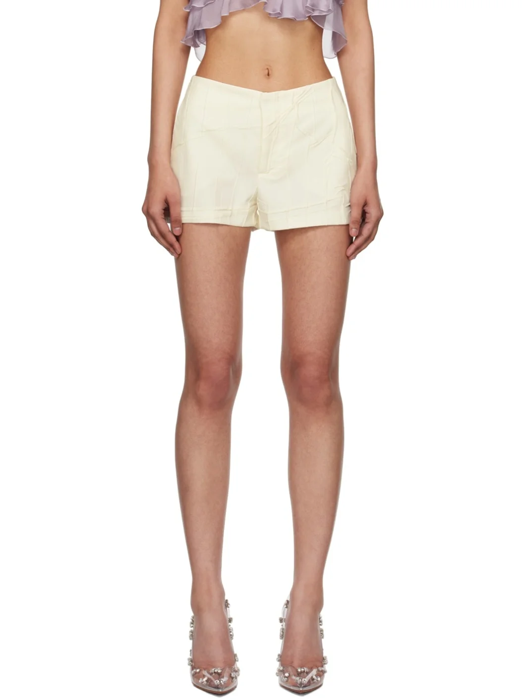 Polyester plisse shorts. · Two-pocket styling · Zip-fly Supplier color: Butter 100% polyester. Made in Italy 241901F088007