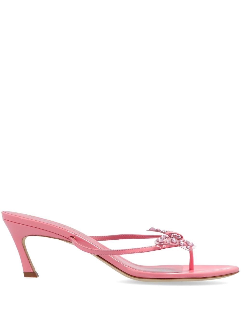 70mm butterfly thong sandals Highlights - Coral pink - Calf leather - Patent finish - Appliquã© detail - Crystal embellishment - Thong style - Branded leather insole - Mid sculpted heel Made in Italy Composition Outer: Bos Taurus 100% Lining: Calf Leather 100% Sole: Calf Leather 100% SIZE & FIT Measurement HEEL 2.75 in(7 cm) Sole height 0.39 in(1 cm)