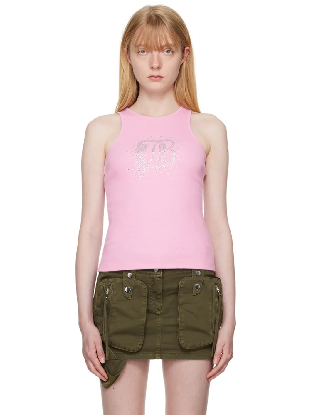 Stretch cotton ribbed jersey tank top. · Rib knit crewneck and armscyes · Crystal-cut logo graphic at chest Supplier color: Pink 95% cotton, 5% elastane. Made in Italy 241901F111052