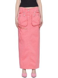 Cotton twill skirt. · Press-stud fastening at belt loops · Zip-fly · Zip pockets at front · Logo embroidered at back waistband · Satin trim at back waist · Central vent at back hem · Partial satin lining · Logo-engraved silver-tone hardware Supplier color: Bubblegum Body 1: 100% cotton. Body 2: 100% viscose. Made in Albania 241901F093000