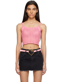 Knit cotton tank top. Scalloped edges and graphic pattern cutout throughout. Supplier color: Bubblegum pink 100% cotton. Made in Italy 231901F111006