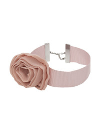 Webbing choker-style necklace in pink. · Chiffon graphic accent at face · Adjustable lobster-clasp fastening · L16.5" Supplier color: Cameo rose Textile. Made in Italy 241901F023003