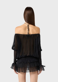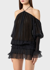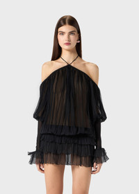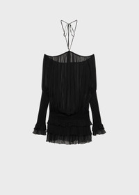 PLEATED CHIFFON DRESS WITH A HALTER NECKLINE AND STRAP DETAIL. WIDE SLEEVES WITH JERSEY DETAIL. COMPOSITION:100%SE - PLEATED SILK CHIFFON - HALTERNECK STYLE NECKLINE WITH TIE-UP STRAPS - SCALLOPED NECKLINE PROFILE - DROPPED SHOULDERS - LONG FLARED SLEEVES - GLOVE-STYLE VISCOSE JERSEY CUFFS - RUFFLED CUFFS - JERSEY WAISTBAND FOR A BLOUSON EFFECT - PLEATED FLOUNCES AT THE BOTTOM - OPEN BACK - JERSEY WAISTBAND FOR A BLOUSON EFFECT - LOOSE FIT DETAILS COLORS: BLACK