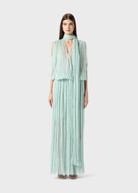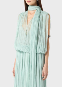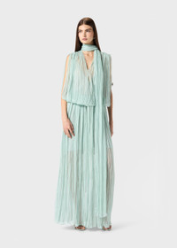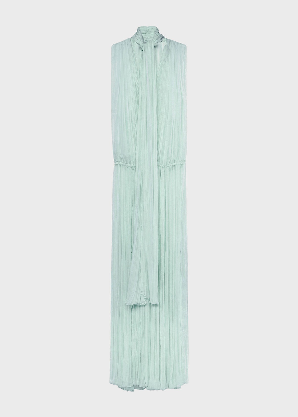 LONG DRESS IN PLEATED SILK WITH A V-NECKLINE AND A SCARF DETAIL. COMPOSITION: 100%SE - PLEATED SILK CHIFFON - SCARF TO TIE AT THE NECK WITH A V-NECKLINE - SLEEVELESS CUT - BLOUSON BODICE - ELASTICATED WAIST - REMOVABLE LINING - FLOOR-LENGTH - LOOSE FIT DETAILS COLORS: LIGHT BLUE