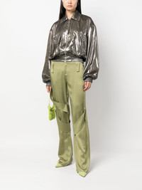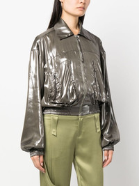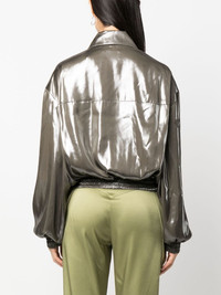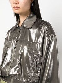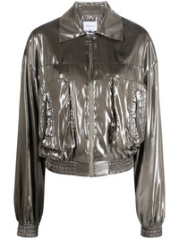 pointed-collar metallic bomber jacket Highlights - Taupe grey - Metallic effect - Patent finish - Tonal stitching - Pointed flat collar - Front zip fastening - Long puff sleeves - Two side zip-fastening pockets - Elasticated hem Made in Italy Composition Lining: Polyester 100% Outer: Polyester 100% SIZE & FIT Model measurements Height 5 ft 10 in(1.78 m) Bust/Chest 30.7 in(78 cm) Hips 36.22 in(92 cm) Waist 25.59 in(65 cm) FittingInformation Designed to be unstructured, offering a loose fit throughout The elasticated hem allows for movement and a comfortable fit Made from a lightweight non-stretch fabric This piece fits true to size – take your usual size