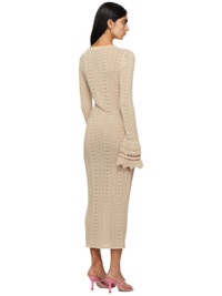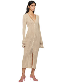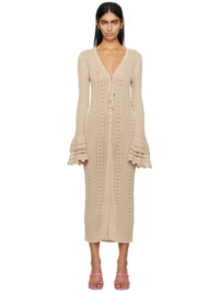 Viscose- and cotton-blend pointelle dress. · Self-tie fastening at rib knit Y-collar · Button closure · Rib knit hem · Scalloped-edge at flared cuffs Supplier color: Sabbia