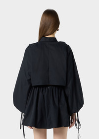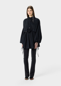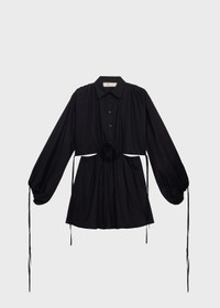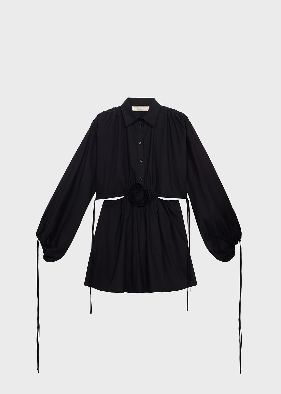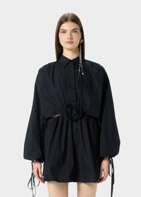 SHORT COTTON POPLIN DRESS WITH A FRONT CUTOUT AND 3D ROSE AT THE CENTER. COMPOSITION: 100%CO - POPLIN COTTON - CENTRAL 3D ROSE AT FRONT - COLLAR - RUFFLED SHOULDERS - LONG SLEEVES - DRAWSTRING AND TIE CLOSURE AT THE CUFFS - BUTTON AND ZIPPER CLOSURE - FLARED BOTTOM - CUT-OUT DETAILING AT BACK - MINI LENGTH - REGULAR FIT DETAILS COLORS: BLACK