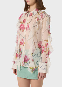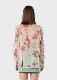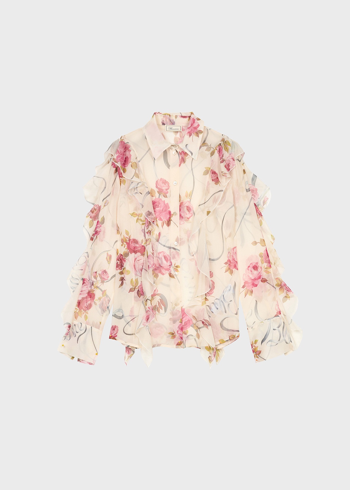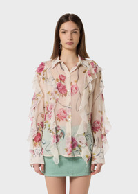 FLOWING SILHOUETTE SHIRT IN CREPONNE SILK WITH RUFFLES. WIDE CUFFS WITH BUTTONS COMPOSITION: 100% SE - SILK CREPONNE - FLORAL PRINT - RUFFLES AT THE SLEEVES, AT FRONT AND BACK - PEAKED LAPELS - LONG SLEEVES - BUTTON CLOSURE - WIDE CUFFS WITH BUTTONS - LOOSE FIT DETAILS COLORS: BEIGE