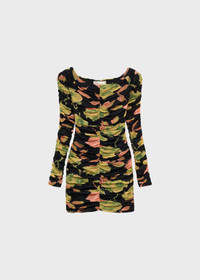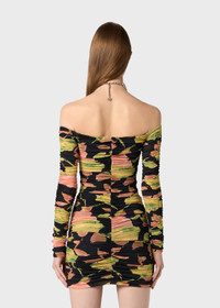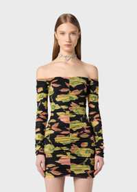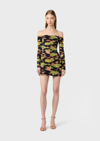 OFF-SHOULDER MINI DRESS IN SECOND-SKIN JERSEY, WITH A FLORAL PRINT, LONG SLEEVES, AND AN OFF-SHOULDER NECKLINE. COMPOSITION: 90% POLYAMIDE 10% ELASTANE LINING: 75% POLYAMIDE 25% ELASTANE - FLORAL PRINT SECOND-SKIN JERSEY - OFF-SHOULDER STYLE - STRAIGHT NECKLINE - LONG SLEEVES - FULLY LINED - MINI LENGTH - SLIM FIT DETAILS COLORS: BLACK