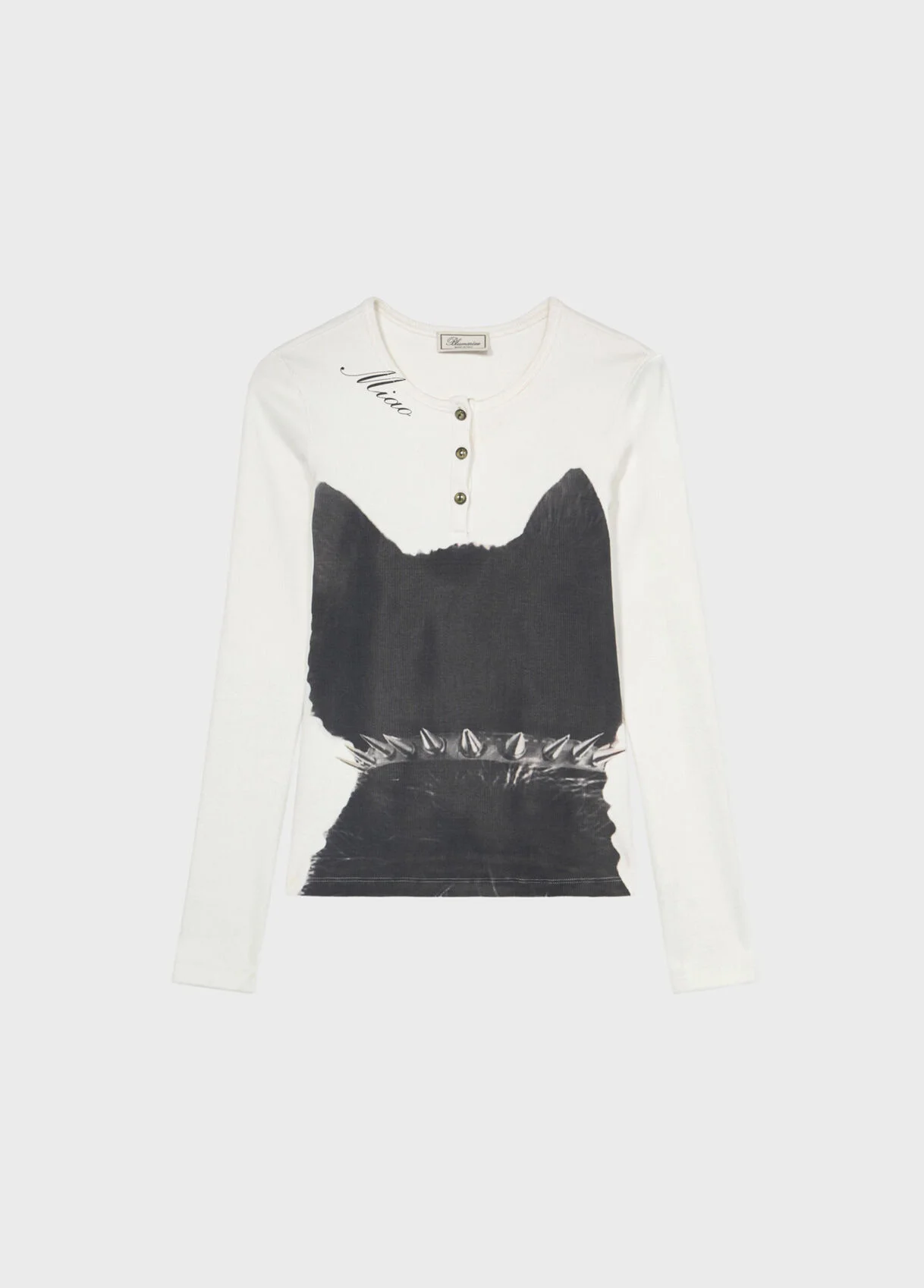 Henley top in stretch cotton jersey with digital print. - Stretch cotton jersey - Digital print - Round neckline - Buttons - Long sleeves - Body-hugging fit DETAILS To find the correct size for you, please consult the Size Guide. Composition: Main fabric: 95% cotton, 5% elastane Wash delicate cycle max 30°C; Do not bleach; Do not tumble dry; Iron at low temperature - no steam; Do not dry clean; Hang dry in shade; Wash with similar colours; Wash inside out; Gentle spin; Do not twist or squeeze; Iron inside out