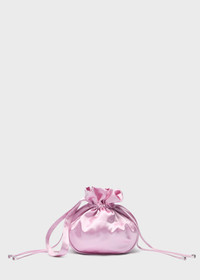 SHINY SATIN CLUTCH BAG WITH BLUMARINE RHINESTONE LOGO, RING HANDLE, AND DRAWSTRING CLOSURE. - SHINY SATIN - BLUMARINE RHINESTONE LOGO DETAILING - DRAWSTRING AND TIE CLOSURE - RING HANDLE IN FABRIC - FULLY LINED - CLUTCH STYLE DETAILS COLORS: PINK