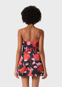 MINI DRESS IN FLORAL-PRINTED VISCOSE SATIN, FEATURING THIN STRAPS, A SQUARE NECKLINE, A FITTED BODICE, AND A SHAPED SKIRT. COMPOSITION: 100% VISCOSE LINING: 100% SILK - VISCOSE SATIN - MACRO ROSE PRINT - SHOULDER PADS - SQUARED NECKLINE - COUTURE SEAMS - SHAPED SKIRT - LOW-CUT BACK - ZIP CLOSURE AT BACK - SILK LINING - MINI LENGTH - REGULAR FIT DETAILS COLORS: BLACK