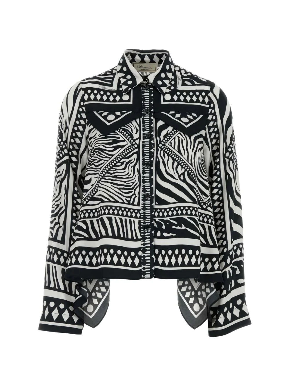 printed twill shirt Highlights - White - Black - Print - Button fastening - Long sleeves - Two chest pockets - Cropped Made in Italy Composition Viscose 100% Washing instructions Read Manufacturer Guidelines