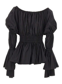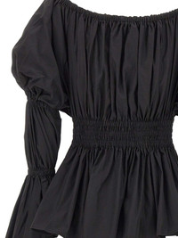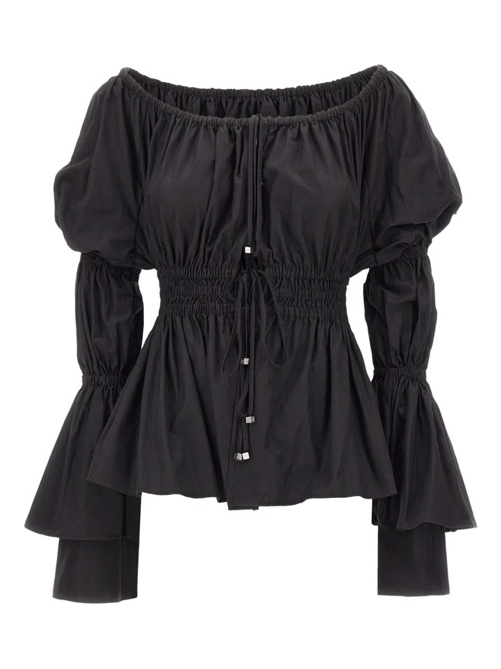 puffed-sleeve elasticated-waist blouse Highlights - Black - Elasticated waist - Puffed sleeves - Off-the-shoulder neckline - Lace-up fastening Made in Italy Composition Polyester 52%, Cotton 48% Washing instructions Read Manufacturer Guidelines
