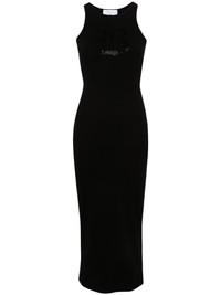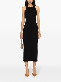 racerback fine-ribbed maxi dress Highlights - Black - Stretch-cotton - Fine ribbed - Applique logo - Rhinestone embellishment - Crew neck - Racerback - Sleeveless - Fitted waistline - Column silhouette - Long length Made in Italy Composition Cotton 95%, Spandex/Elastane 5% SIZE & FIT Model measurements Height 5 ft 10 in(1.78 m) Bust/Chest 31.49 in(80 cm) Hips 35.03 in(89 cm) Waist 23.62 in(60 cm) FittingInformation Designed for a slim fit that sits just away from the body offering a close yet comfortable fit Made from a midweight stretch fabric, this piece offers elasticity and flexibility when worn This piece fits true to size – take your usual size Washing instructions Machine Wash