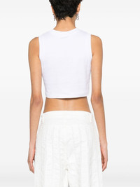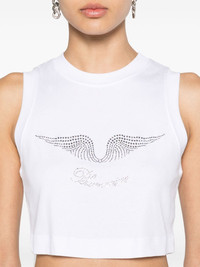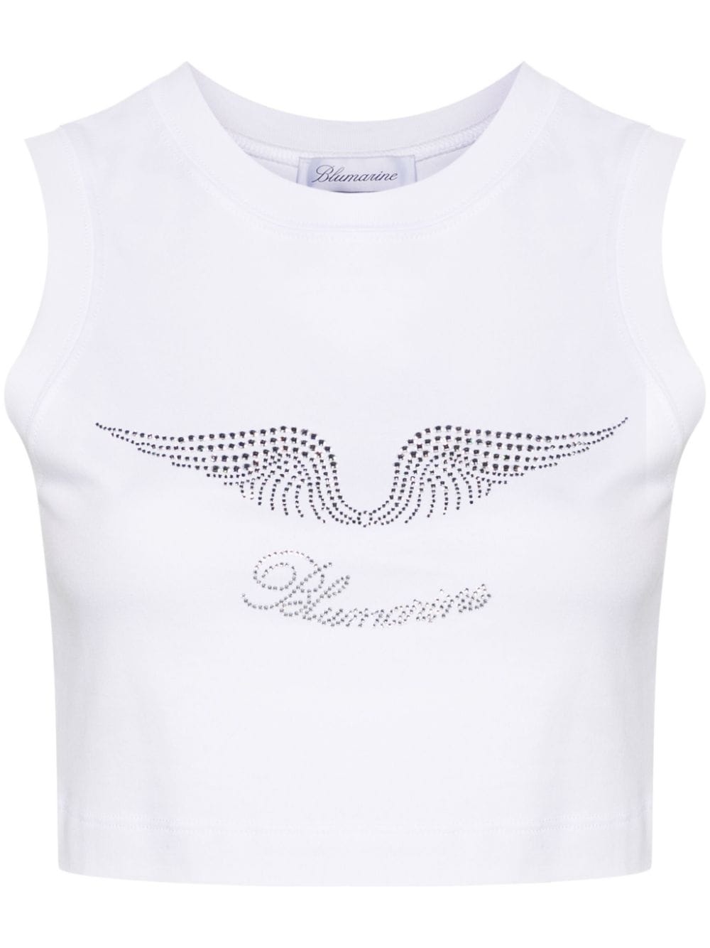rhinestone-embellished cropped tank top Highlights - White - Cotton - Lightweight jersey - Rhinestone embellishment - Crew neck - Sleeveless - Straight hem - Cropped Made in Italy Composition Cotton 100% SIZE & FIT Model measurements Height 5 ft 10 in(1.77 m) Bust/Chest 32.28 in(82 cm) Hips 34.64 in(88 cm) Waist 24.01 in(61 cm) FittingInformation Designed for a slim fit that sits just away from the body offering a close yet comfortable fit Made from a midweight non-stretch fabric, this piece offers minimal elasticity when worn This piece fits true to size – those with a petite frame may wish to take one size down