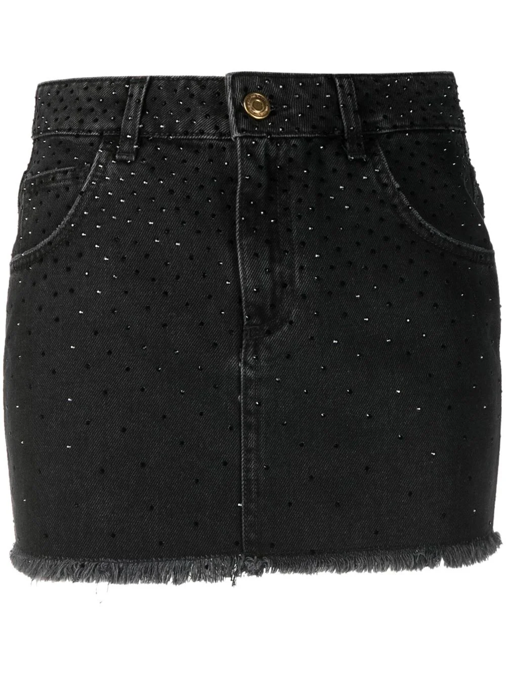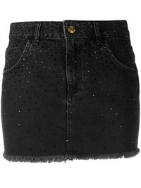 rhinestone-embellished denim skirt Highlights - Black - Cotton - Denim - Rhinestone embellishment - Embroidered logo to the rear - Front button and zip fastening - Classic five pockets - Frayed detailing - Thigh-length Made in Italy Composition Outer: Cotton 100% Lining: Polyester 65%, Cotton 35% Washing instructions Hand Wash