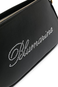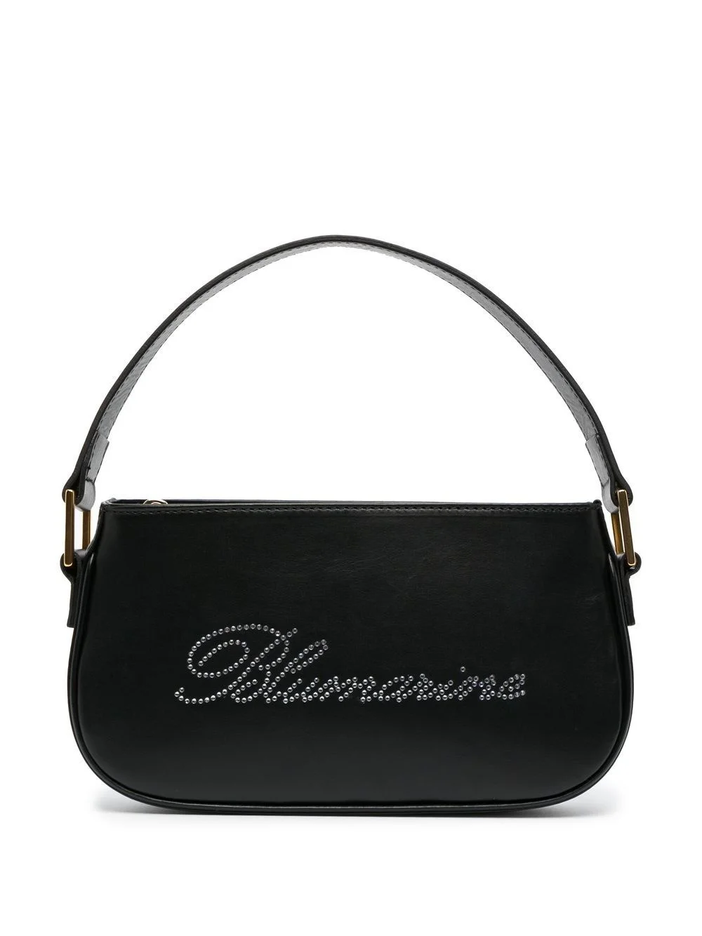 rhinestone-logo leather bag Italian label Blumarine revives the noughties for a contemporary eye with its signature aesthetic. Made from smooth calf leather, this bag takes on a signature shoulder silhouette from the past era that is adorned with the brand's lettering in glimmering rhinestones. Highlights - Black - Calf leather - Rhinestone embellishment - Logo patch to the front - Single shoulder strap - Top zip fastening - Main compartment Made in Italy Composition Lining: Cotton 100% Outer: Calf Leather 100% SIZE & FIT Model measurements Height 5 ft 9 in(1.76 m) Bust/Chest 33.07 in(84 cm) Hips 34.64 in(88 cm) Waist 25.59 in(65 cm) Measurement DEPTH 1.96 in(5 cm) HANDLE 6.69 in(17 cm) HEIGHT 5.51 in(14 cm) WIDTH 9.84 in(25 cm)