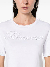 rhinestone embellished cotton T-shirt Highlights - White - Cotton - Jersey texture - Tonal stitching - Rhinestone embellishment - Embroidered logo - Round neck - Drop shoulder - Short sleeves - Cropped - Straight hem Made in Italy Composition Cotton 100% SIZE & FIT Model measurements Height 5 ft 10 in(1.78 m) Bust/Chest 33.46 in(85 cm) Hips 36.22 in(92 cm) Waist 23.22 in(59 cm) FittingInformation Designed for a slim fit that sits just away from the body offering a close yet comfortable fit Made from a midweight non-stretch fabric, this piece offers minimal elasticity when worn This piece fits true to size – take your usual size