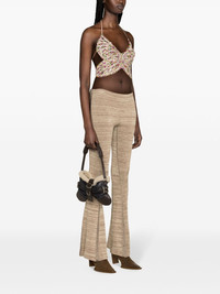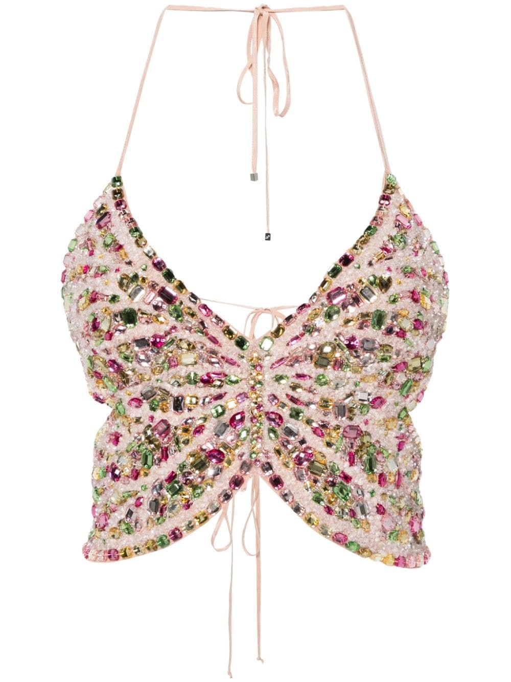 rhinestoned halterneck top Highlights - Beige/multicolour - Tulle netting - Textured finish - Rhinestone embellishment - V-neck - Halterneck tie fastening - Rear tie fastening - Open back - Curved hem - Cropped - Full lining Imported Composition Outer: Polyamide 100% Lining: Viscose 100%