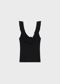 Ribbed viscose a-jour top with a neckline trimmed with a ruffle. - Ribbed viscose a-jour - Sleeveless - Straps - V-neckline at the front and back trimmed with a ruffle - Regular fit DETAILS To find the correct size for you, please consult the Size Guide. Composition: Main fabric: 80% Viscose, 20% Polyamide Hand wash - room temperature; Do not bleach; Do not tumble dry; Iron at low temperature - without steam; Dry clean with tetrachloroethylene or hydrocarbons - gentle process; Dry flat in the shade; Wash inside out; Iron inside out
