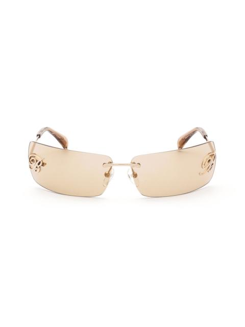 Rimless sunglasses with a low, wraparound front, slim metal temples and acetate tips combining comfort and style. The lenses are enriched with the monogram on both sides. DETAILS Composition: 100% Acetate
