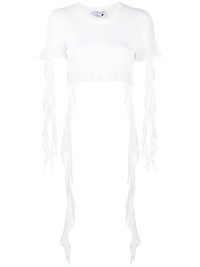 ruffled cotton crop top Highlights - White - Round neck - Short sleeves - Ruffle cuffs - Ruffle hem Imported Composition Cotton 100% SIZE & FIT Model measurements Height 5 ft 10 in(1.78 m) Bust/Chest 33.07 in(84 cm) Hips 36.61 in(93 cm) Waist 24.8 in(63 cm) FittingInformation Designed for a slim fit that sits just away from the body offering a close yet comfortable fit Cropped in length Made from a midweight non-stretch fabric, this piece offers minimal elasticity when worn This piece fits true to size – take your usual size