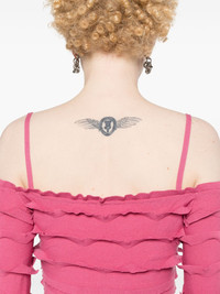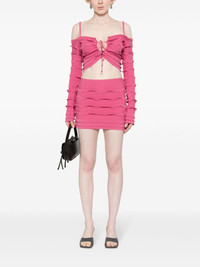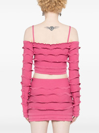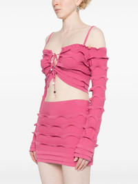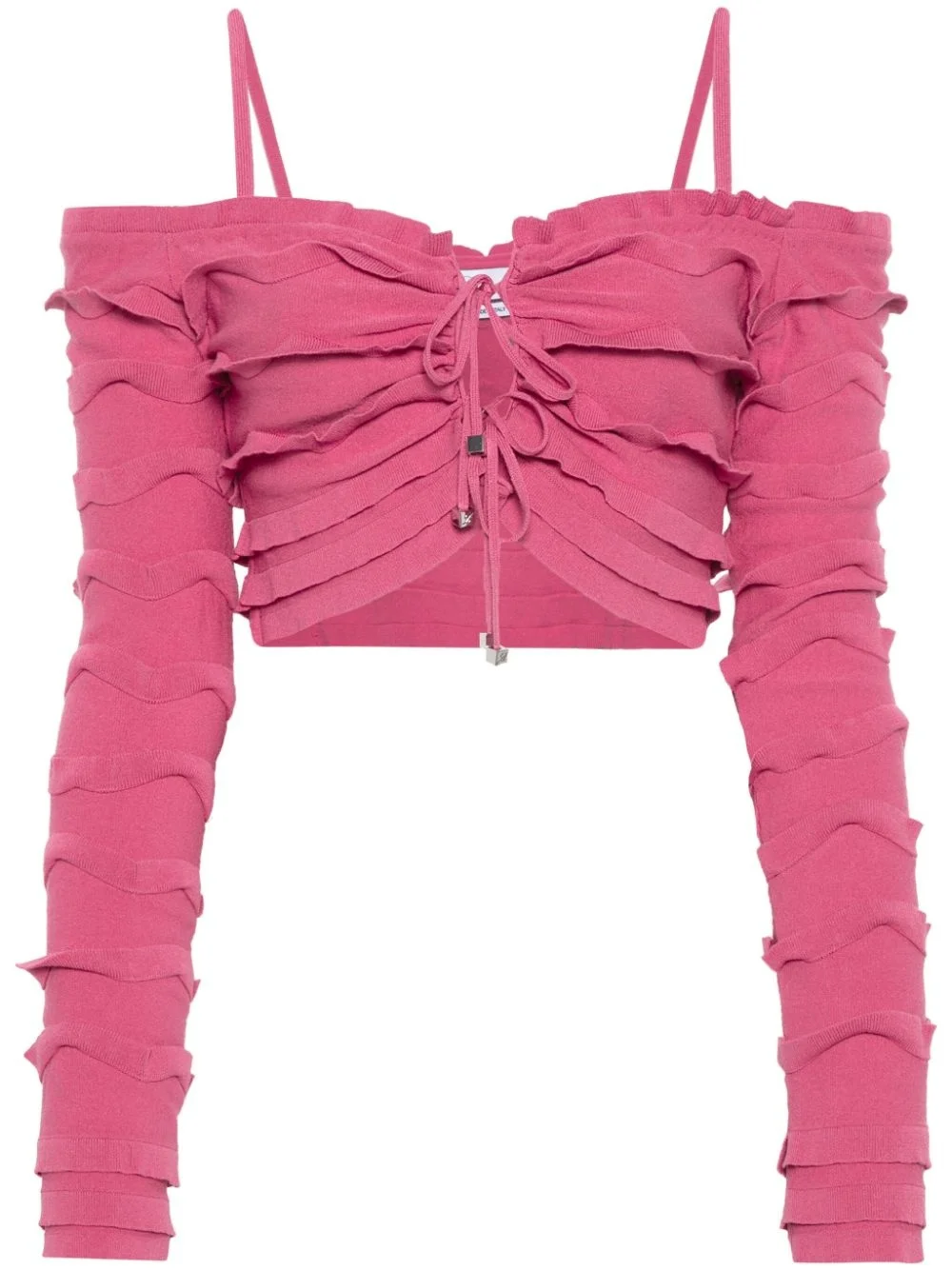 ruffled cropped cardigan Highlights - Raspberry - Knitted construction - V-neck - Ruffled detailing - Long sleeves - Internal logo tag - Cropped - Straight hem - Front tie fastening Made in Italy Composition Viscose 70%, Polyester 30% SIZE & FIT Model measurements Height 5 ft 9 in(1.75 m) Bust/Chest 34.64 in(88 cm) Hips 36.61 in(93 cm) Waist 26.37 in(67 cm) FittingInformation Designed for a close fit throughout Made with a lightweight knit, this piece offers some stretch This piece fits true to size – take your usual size Washing instructions Machine Wash