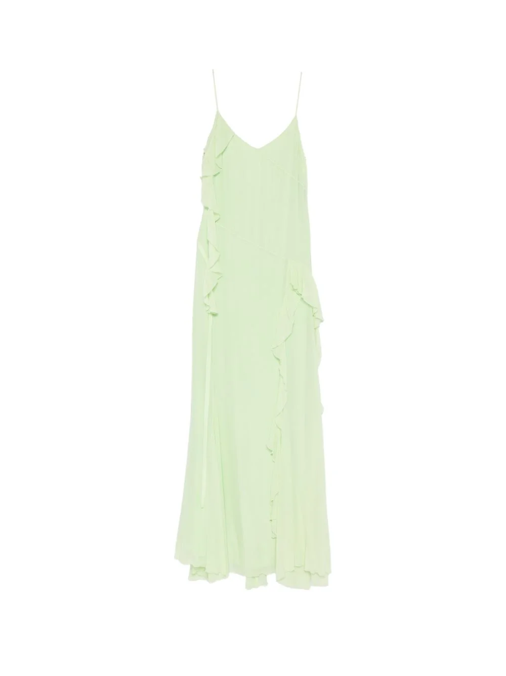 ruffled dress Highlights - Lime green - V-neck - Thin straps - Ruffles - Asymmetrical neckline Made in Italy Composition Silk 100% Washing instructions Dry Clean Only