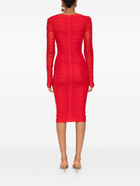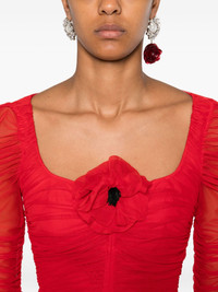ruffled long-sleeved party dress Highlights - Lipstick red - Ruched detailing - Long sleeves - Square neck - Rosette embellishment - Fitted bodice Made in Italy Composition Outer: Polyamide 90%, Elastane 10% Lining: Polyamide 75%, Elastane 25% SIZE & FIT Model measurements Height 5 ft 10 in(1.77 m) Bust/Chest 33.07 in(84 cm) Hips 37 in(94 cm) Waist 24.8 in(63 cm) Washing instructions Machine Wash