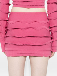 ruffled mini skirt Highlights - Raspberry pink - Knitted construction - Ruffled detailing - Internal logo tag - Thigh-length - Elasticated waistband Made in Italy Composition Viscose 70%, Polyester 30% SIZE & FIT Model measurements Height 5 ft 9 in(1.75 m) Bust/Chest 34.64 in(88 cm) Hips 36.61 in(93 cm) Waist 26.37 in(67 cm) FittingInformation This mini-length skirt is intended to be worn high on the waist The elasticated waist allows for a comfortable fit Made with a lightweight knit, this piece offers some stretch This piece fits true to size – take your usual size