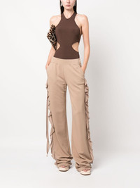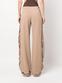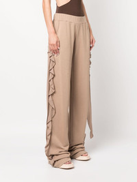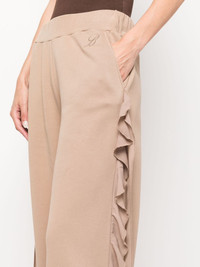ruffled-trim wide-leg trousers Highlights - Camel brown - Cotton - Ruffled detailing - Embroidered logo to the front - Wide leg - Elasticated waistband - Two side inset pockets - Extra-long length Imported Composition Polyester 100%, Cotton 100% SIZE & FIT Model measurements Height 5 ft 10 in(1.78 m) Bust/Chest 33.46 in(85 cm) Hips 36.22 in(92 cm) Waist 23.22 in(59 cm) FittingInformation Designed with a wide-leg cut, these trousers allow for a close fit at the waist and offer a loose and roomy fit over the leg The elasticated waist allows for a comfortable fit Made from a midweight non-stretch fabric, this piece offers minimal elasticity when worn This piece fits true to size – take your usual size Washing instructions Machine Wash