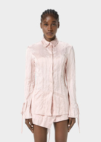 CRINKLED SATIN SHIRT WITH LONG SLEEVES AND TIE CUFFS IN A BOW. COMPOSITION: 53%VI 36%CO 11%ME - CRINKLED SATIN - FITTED SILHOUETTE - COLLAR - LONG SLEEVES - WIDE CUFFS WITH SLITS AND STRINGS - BUTTON CLOSURE - REGULAR FIT DETAILS COLORS: PINK