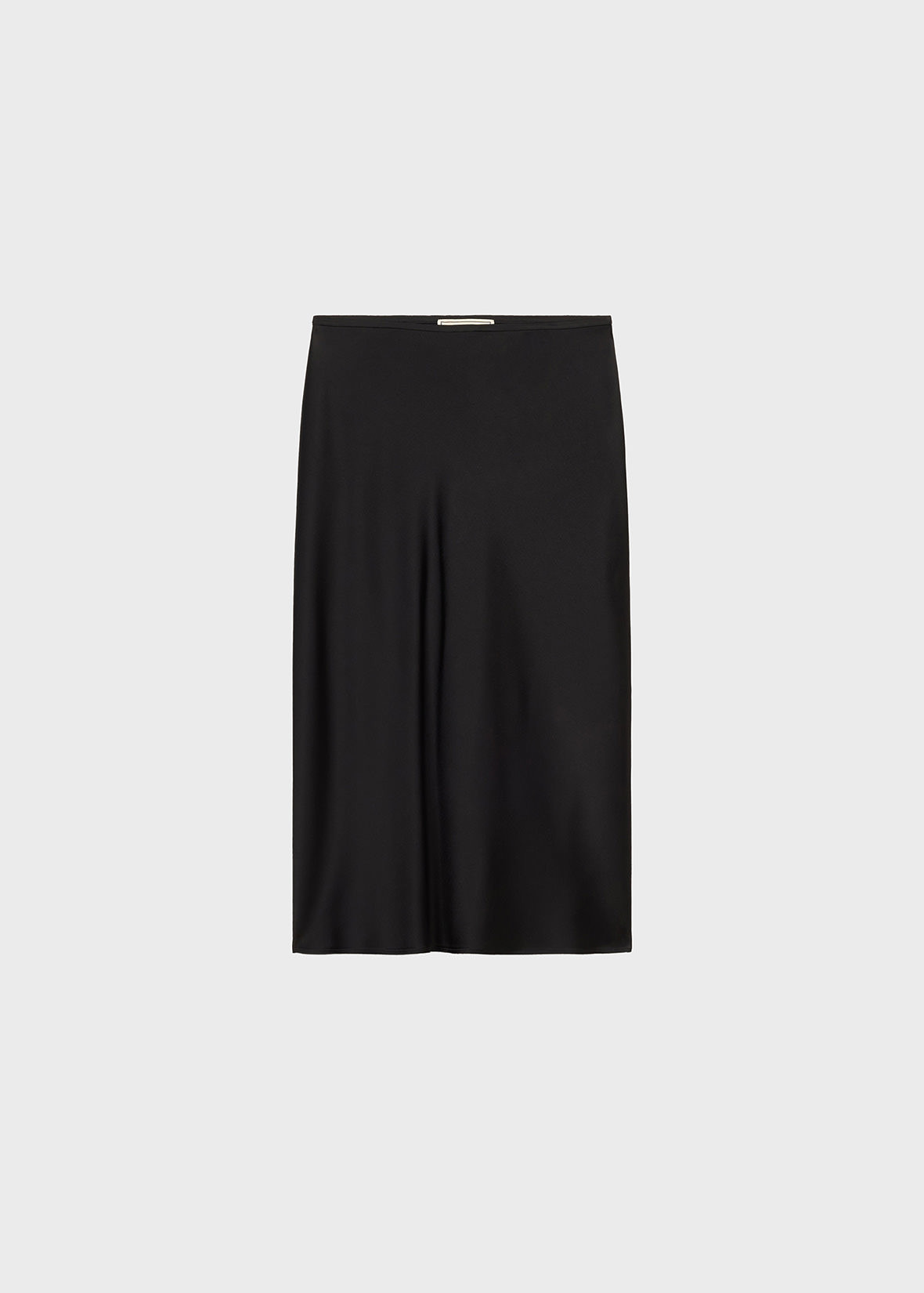 SHINY SATIN FOR THIS SLIP-STYLE MIDI SKIRT WITH A SLIGHTLY A-LINE HEM. COMPOSITION: 71% AC 27% VI 2% EA - SATIN - FLARED LINE - SLIGHTLY WAVY BOTTOM - ZIP CLOSURE AT SIDE - MIDI-LENGTH - REGULAR FIT DETAILS COLORS: BLACK