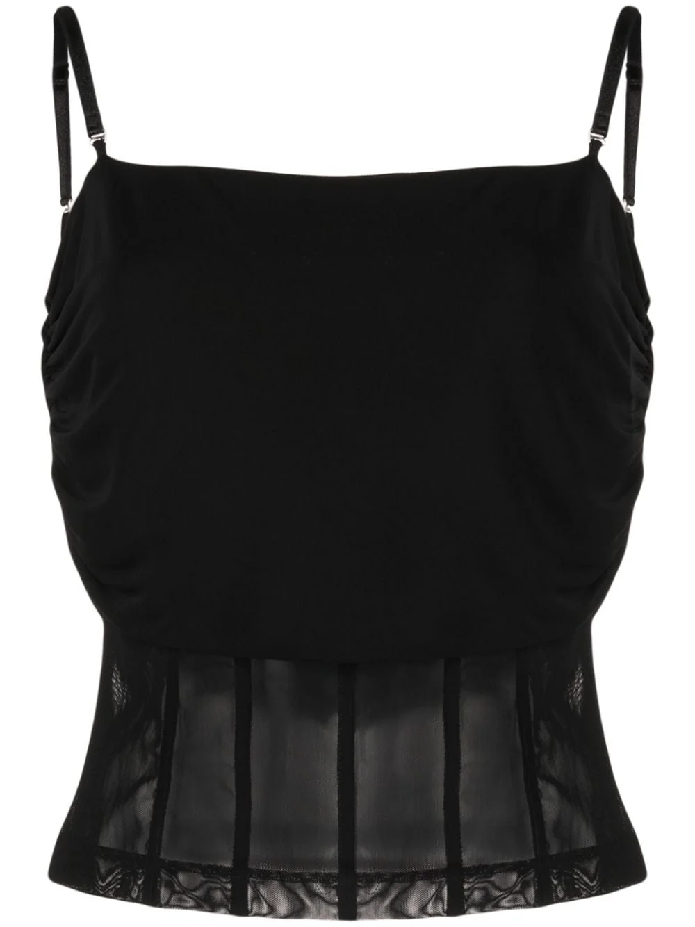 semi-sheer sleeveless top Highlights - Black - Sheer panelling - Two adjustable detachable shoulder straps - Sleeveless - Straight hem Made in Italy Composition Viscose 100% SIZE & FIT Model measurements Height 5 ft 9 in(1.76 m) Bust/Chest 31.1 in(79 cm) Hips 35.03 in(89 cm) Waist 24.4 in(62 cm) FittingInformation Designed for a slim fit that sits just away from the body offering a close yet comfortable fit The adjustable shoulder straps allow for a preferred fit when worn Made from a midweight non-stretch fabric, this piece offers minimal elasticity when worn This piece fits true to size – take your usual size