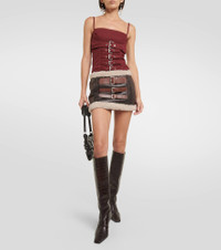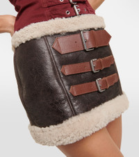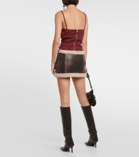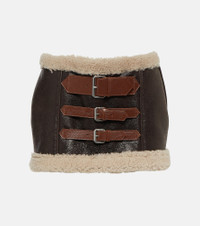 Shearling-trimmed leather miniskirt