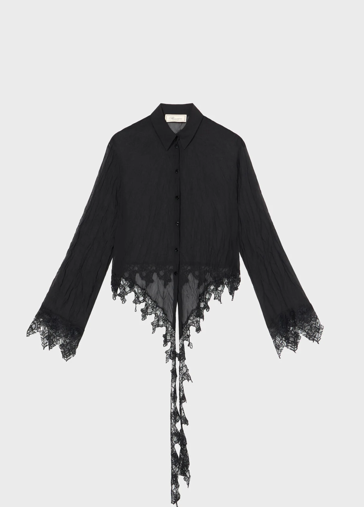 CHIFFON SHIRT WITH LACE FLOUNCE