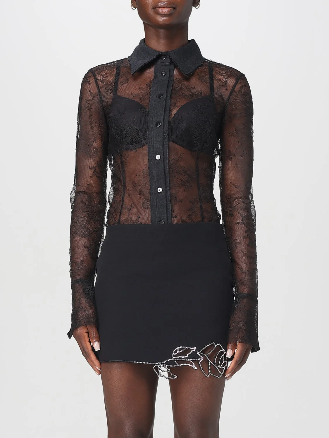 DESCRIPTION - Style: Romantic - Neck: Classic - Shoulders: Regular - Closure: With snap buttons on the bottom - Bottom: With straight hemline - Sleeves: Long sleeve shirts - Materials: Lace - Pattern: Plain-colored DETAILS AND CARE Composition _TESSUTO 1: 50% PA, 50% VI; TESSUTO 2: 100% C SIZE AND FIT Sizes not available Size and fit Slim fit Designer code: 2C391A N0990 Giglio Code: H18163 Designer: Blumarine Collection: Blumarine Woman Category: Clothing Blumarine