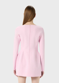 short dress in double crepe with a shaped silhouette, heart-neckline, oblique pockets, metal flower detail applied. - Double crepe - Shaped silhouette - Metal flower application - Heart neckline - Long sleeves - Oblique pockets - Zip closure at the back - Midi length - Regular fit - Made in Italy DETAILS To find the correct size for you, please consult the Size Guide. Composition: Main fabric: 95% polyester, 5% elastane; Main lining: 100% polyester Do not wash; Do not bleach; Do not tumble dry; Iron at low temperature - no steam; Dry clean with tetrachloroethylene or hydrocarbons - gentle cycle; Reshape after cleaning; Protect trims during clean; Clean inside out; Iron inside out