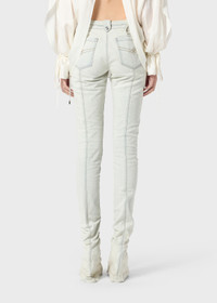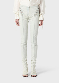 BLEACHED DENIM JEANS WITH CORSET-STYLE LACES AND PUDDLE HEM. COMPOSITION: 98%CO 2%EA - BLEACHED DENIM - SKINNY STYLE - CUT-OUT DETAIL WITH EYELETS AND LACES - ZIPPER AND BUTTON CLOSURE - CENTER-LEG TOPSTITCHING - PUDDLE BOTTOM - BACK POCKETS - BELT LOOP WITH BUTTON AT BACK - SLIM FIT DETAILS COLORS: WHITE