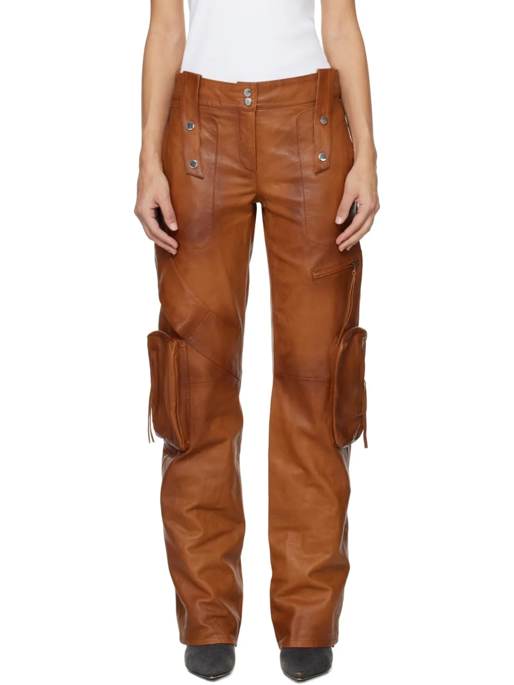 Brown Bellows Pocket Leather Pants