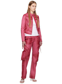 Wide-leg vegetable-tanned grained lambskin pants. · Paneled construction · Press-stud tabs at waistband · Four-pocket styling · Zip-fly · Zip pocket at front · Integrated press-stud tab at outseam · Zip pocket at outseams · Partial twill lining · Logo-engraved silver-tone hardware Supplier color: Geranio Body: 100% lambskin. Lining: 57% viscose, 43% polyester. Made in India 241901F084001