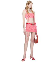 Stretch cotton chambray tank top. Metal eyelets and fading throughout. · Square neck · Cargo pockets at front · Concealed zip closure at side seam · Fixed shoulder straps Available exclusively at SSENSE. Supplier color: Bubblegum