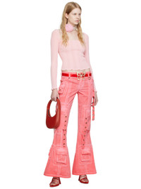 Flared stretch cotton poplin trousers. Fading, straps, and eyelets throughout. · Belt loops · Five-pocket styling · Zip-fly · D-ring at front · Bellows pockets at cuffs and outseams · Embroidered logo patch at back waistband · Logo-engraved gunmetal-tone hardware Available exclusively at SSENSE. Supplier color: Bubblegum